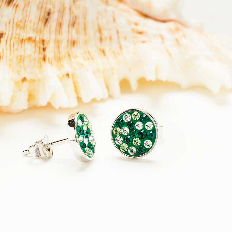 Sterling Silver Peridot/White Crystal Stud Earrings