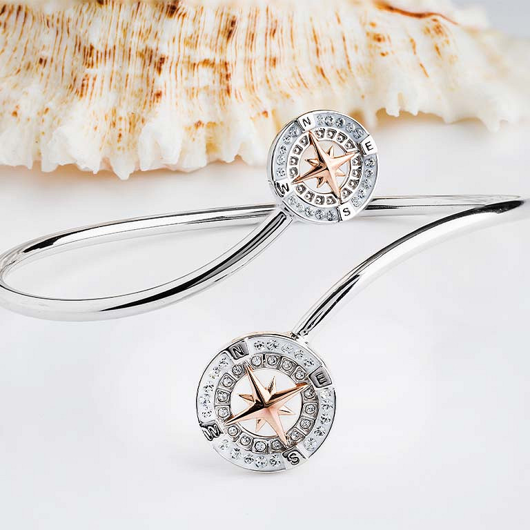 Sterling Silver RG Bypass Compass Crystal Bangle