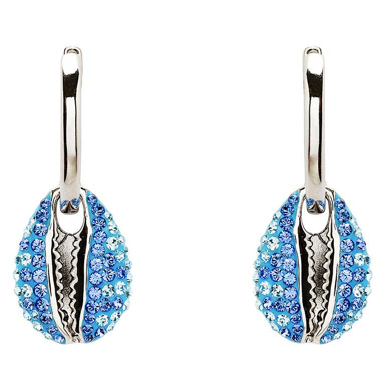 Sterling Silver Saph/Aqua Crystal Cowrie Shell Earrings