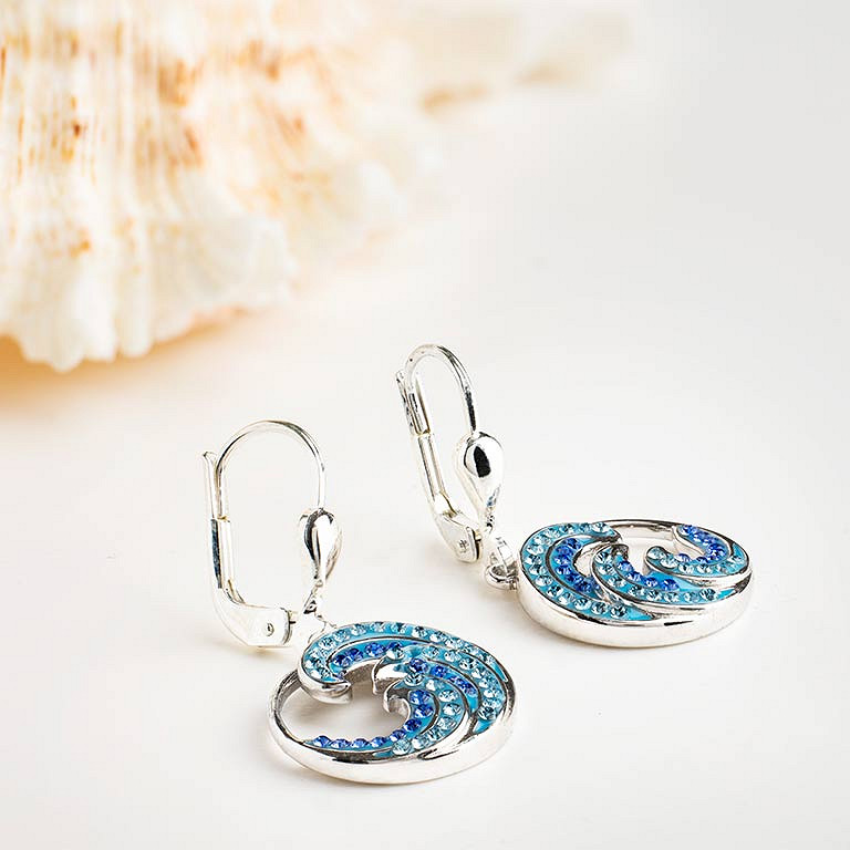 Sterling Silver Sapphire Aqua Crystal Wave Drop Earrings