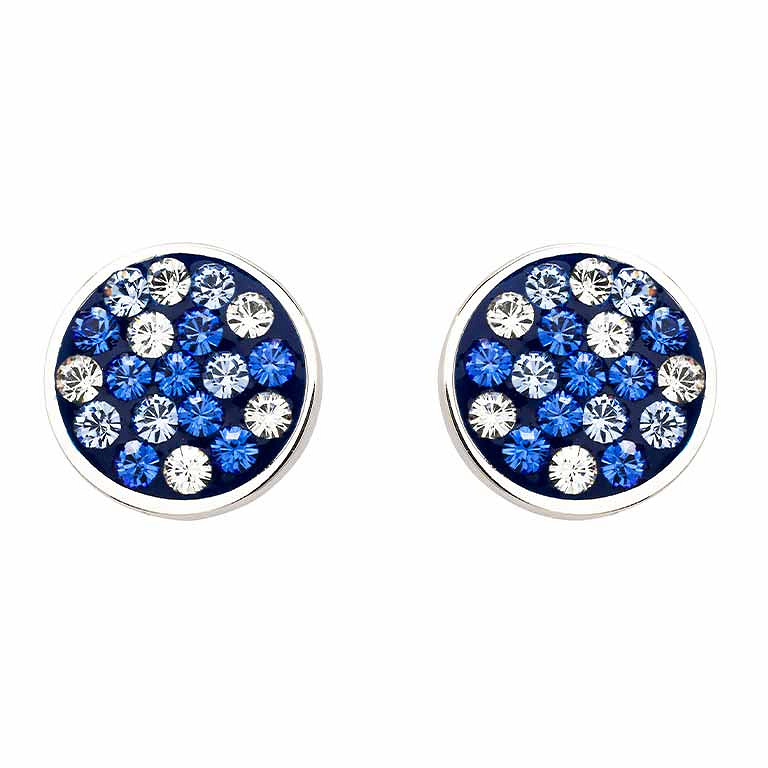 Sterling Silver Sapphire/White Crystal Stud Earrings