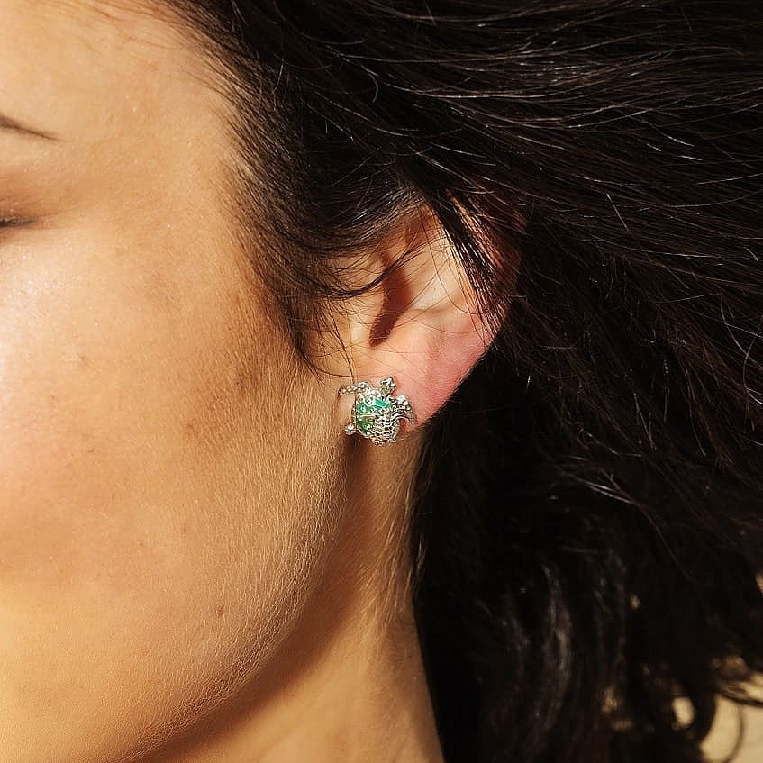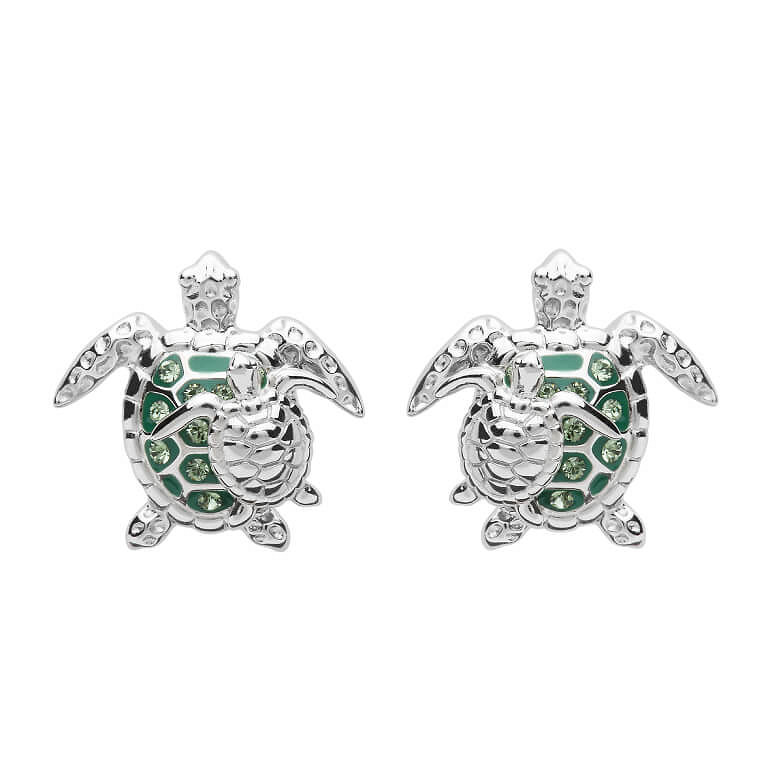 Sterling Silver SW Crystal Turtle and Baby Stud Earrings