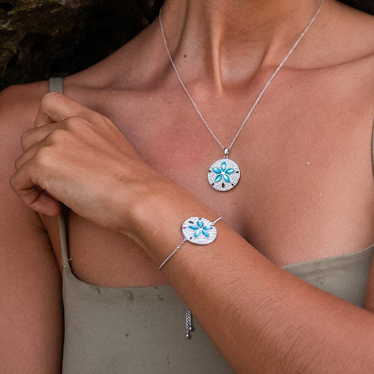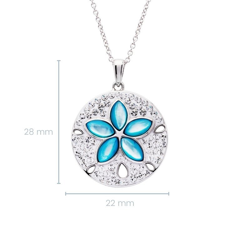 Sterling Silver Swarovski Aqua MOP Sand Dollar Pendant