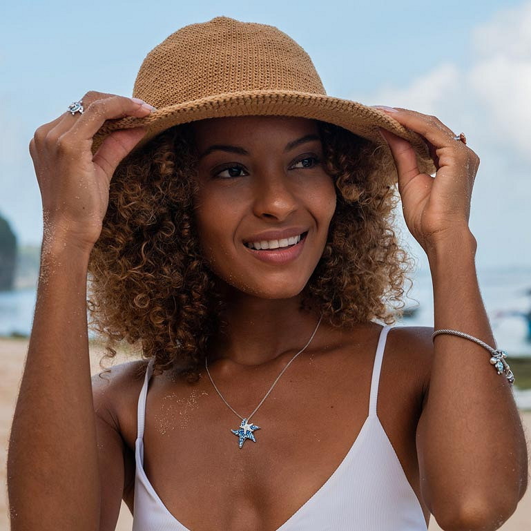 Sterling Silver Swarovski Blue Baby and Mom Starfish Pendant