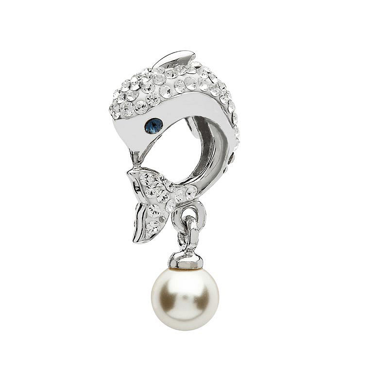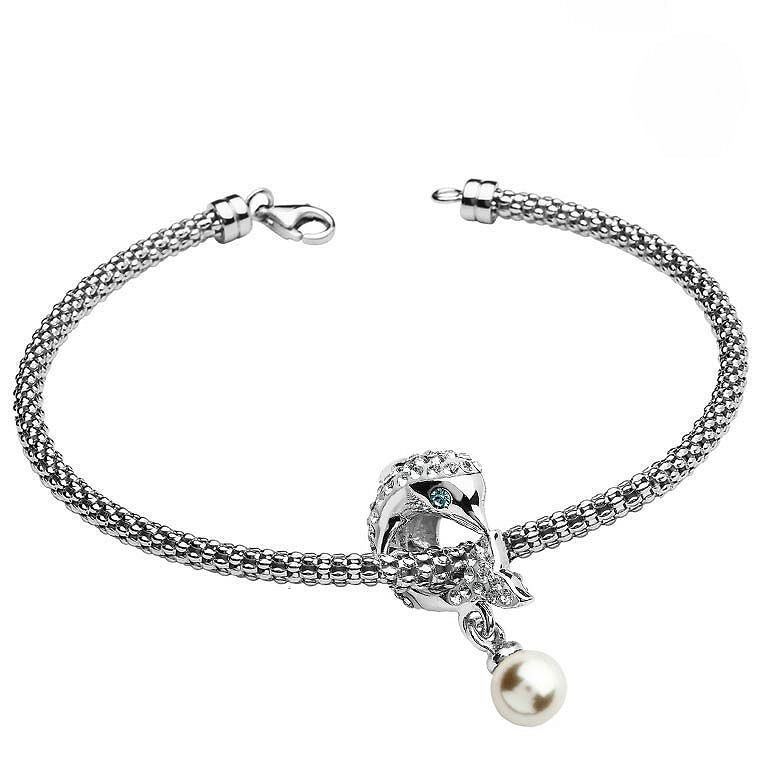 Sterling Silver Swarovski Pearl and Crystal Dolphin Bead