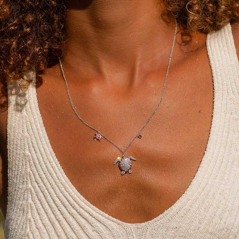 Sterling Silver Swarovski Rose Gold Plate Turtle Necklace