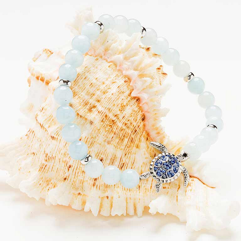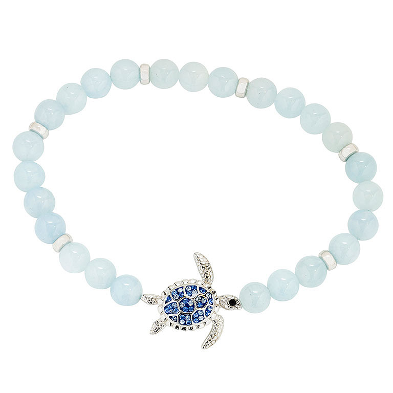 Sterling Silver Turtle Aqua Stretchy Bracelet