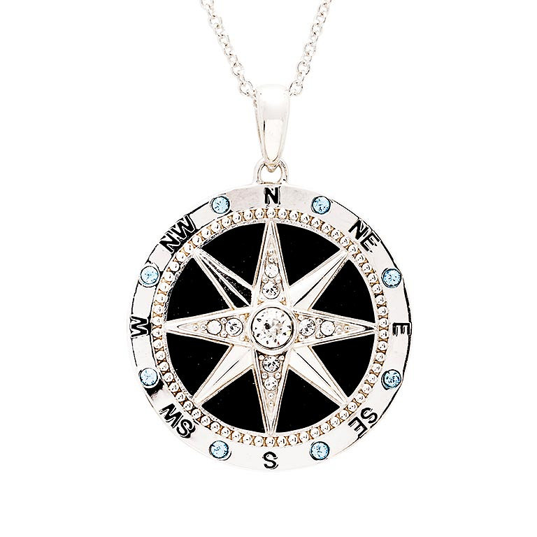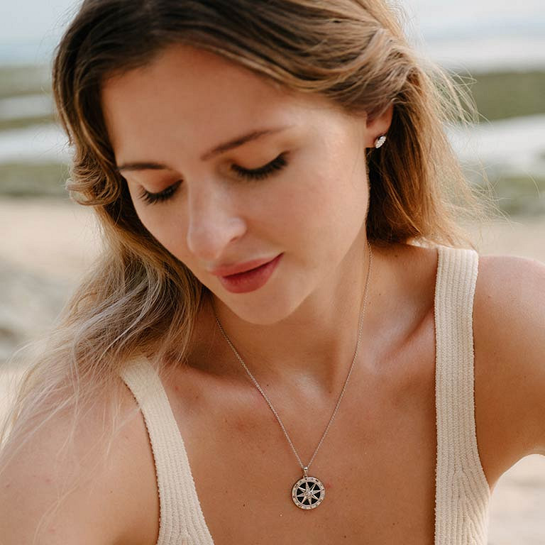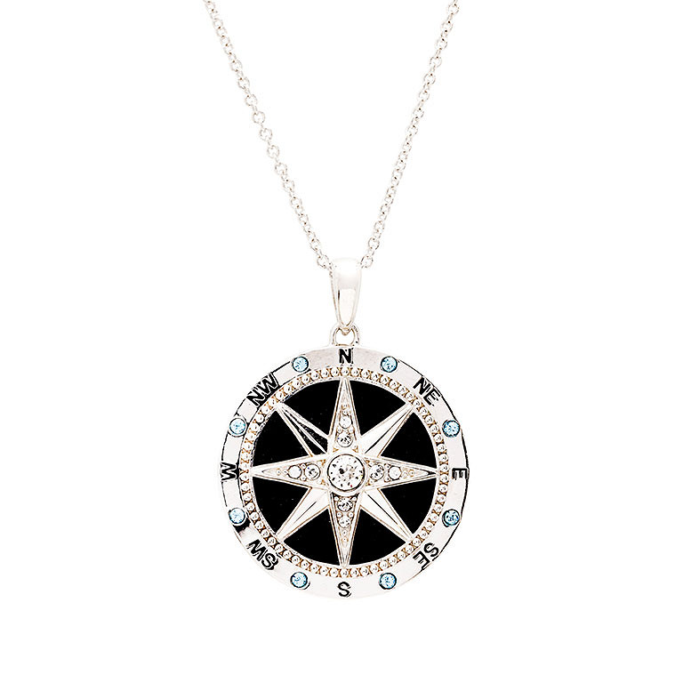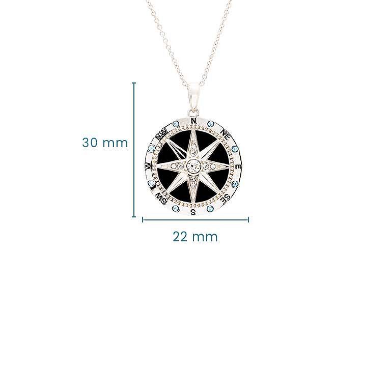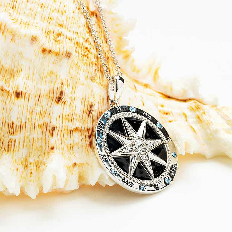 Sterling Silver White Crystal Enamel Compass Necklace