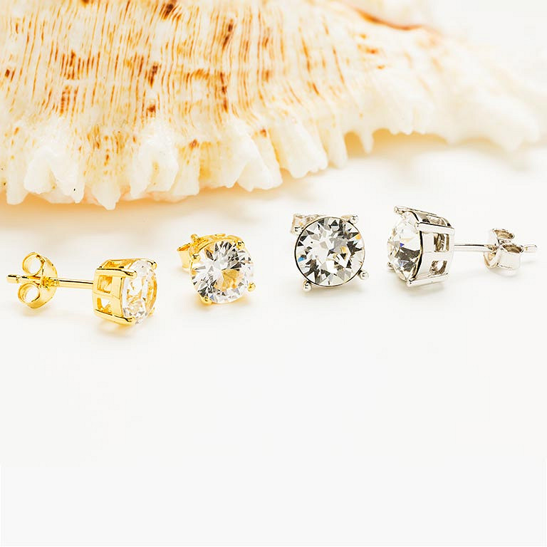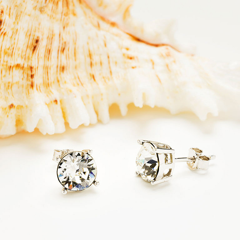 Sterling Silver White Crystal Stud Earrings