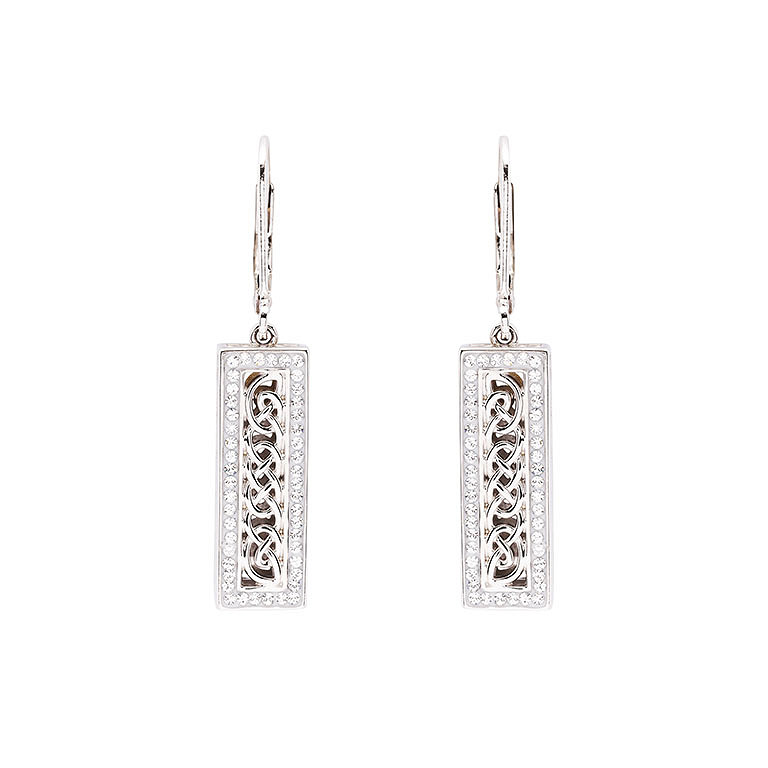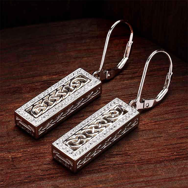 Sterling Silver white crystals Celtic Ingot Earrings