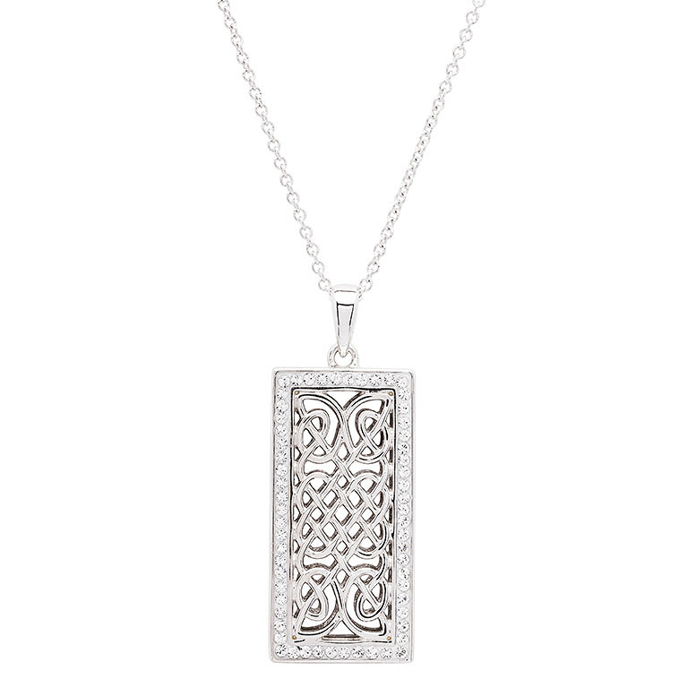 Sterling Silver white crystals Celtic Ingot necklace