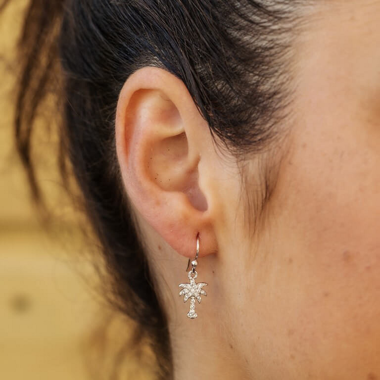 Sterling Silver White SW Crystal Palm Tree Drop Earrings