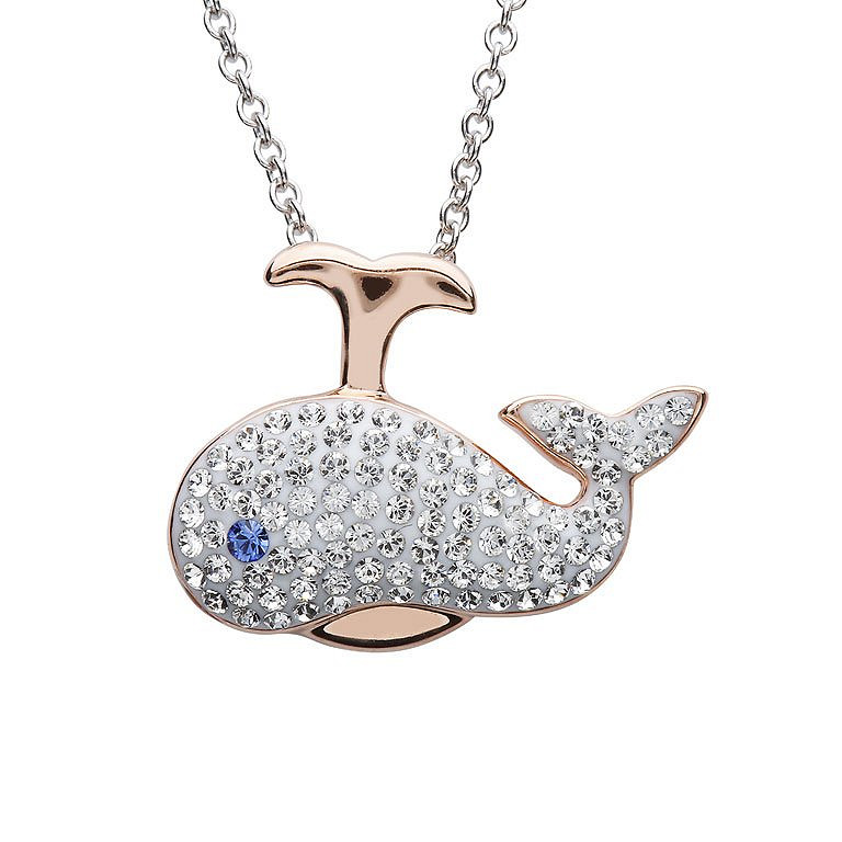 Sterling Silver White SW Crystal Rose Whale Necklace