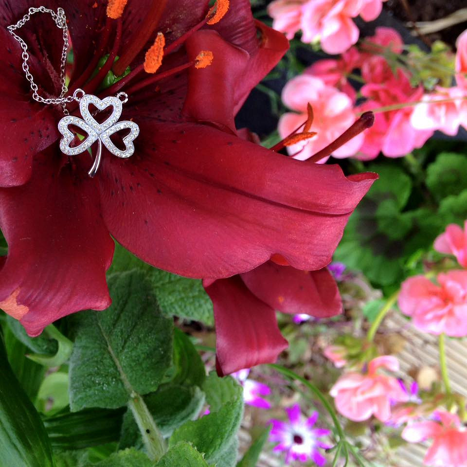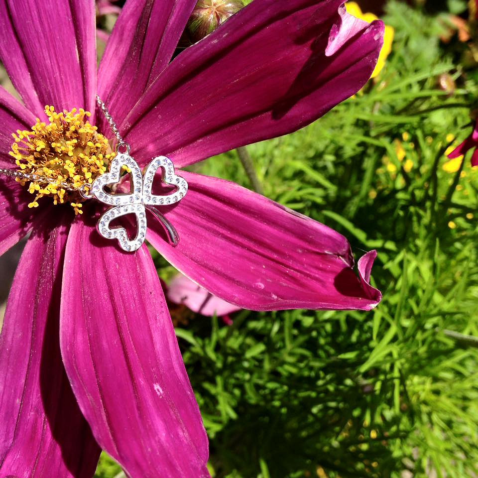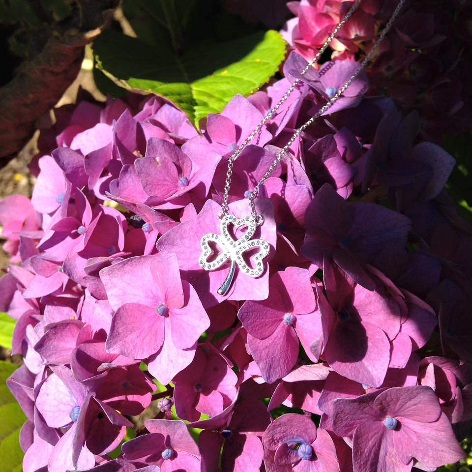Sterling Silver White Swarovski Crystal Shamrock Necklace