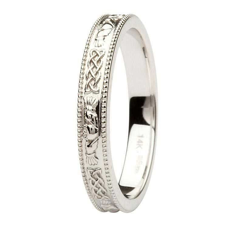 14kt White Gold Lds Clad/Celtic Ring