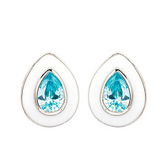 Sterling Silver Aqua CZ with white Enamel Earrings