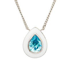 Sterling Silver Aqua CZ with white Enamel Necklace