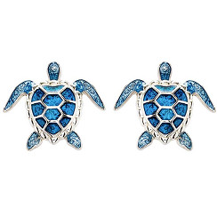 Sterling Silver Blue Enamel Turtle Stud Earrings