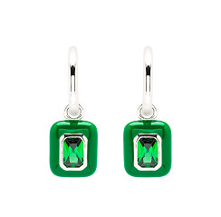 Sterling Silver Green CZ white Green Enamel Drop Earrings