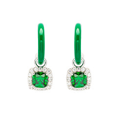 Sterling Silver Green CZ with Green Enamel Drop Earrings