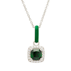 Sterling Silver Green CZ with Green Enamel Necklace