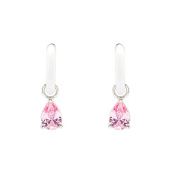 Sterling Silver Pink CZ with White Enamel Drop Earrings