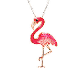 Sterling Silver Pink Enamel and CZ Flamingo Necklace