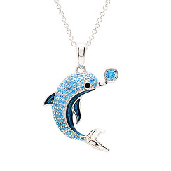Sterling Silver Sapphire Enamel and CZ Dolphin Necklace