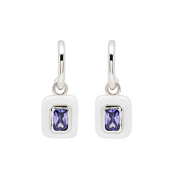 Sterling Silver Tanzanite CZ with white Enamel Drop Earrings