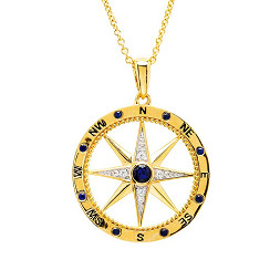14k Gold Vermeil Blue Lab Sapphire Compass Necklace