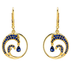 14k Gold Vermeil Blue Lab Sapphire Wave Earrings
