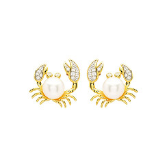 14KT Gold Vermeil CZ / Pearl Crab Stud Earrings