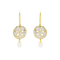 14KT Gold Vermeil CZ / Pearl Sand Dollar Drop Earrings