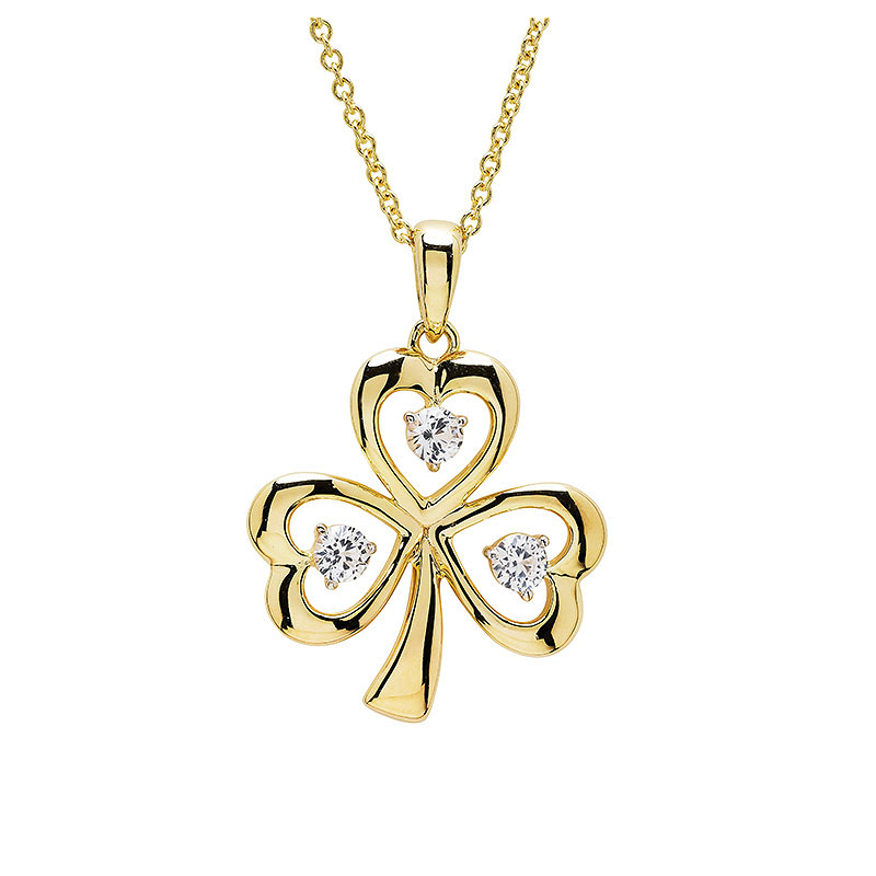 14kt Gold Vermeil Shamrock white Sapphire Necklace