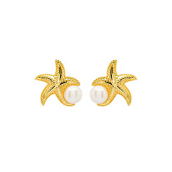 14KT Gold Vermeil Starfish and Pearl Stud Earrings