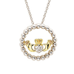 Sterlin Silver CZ Claddagh Necklace with 1m Gold Plate