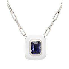 Sterling Silver Tanzanite CZ with white Enamel Necklace