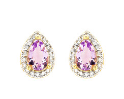 14kt Gold Vermeil Genuine Amythest Halo Earrings