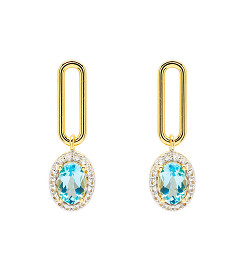 14kt Gold Vermeil Genuine Blue Topaz Halo Drop Earrings