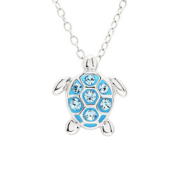 Sterling Silver Aqua Crystal Turtle mini Necklace