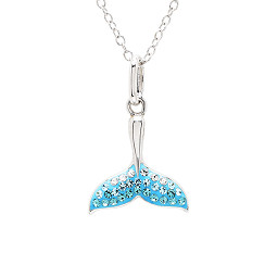 Sterling Silver Aqua Crystal Whale Tail mini Necklace