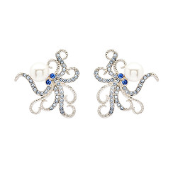 Sterling Silver Pearl and Crystal Octopus Earrings