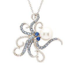 Sterling Silver Pearl and Crystal Octopus Necklace