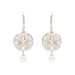 Sterling Silver Pearl and Crystal Sand Dollar Earrings
