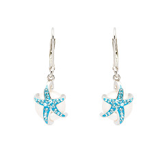 Sterling Silver Pearl / Aqua Crystal Starfish Earrings
