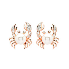 Sterling Silver Pearl / Crystal Rose Gold Crab Earrings