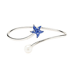 Sterling Silver Pearl & Sapphire Crystal Starfish Bangle