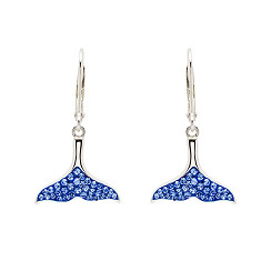 Sterling Silver Pearl / Sapphire Crystal Whale Tail Earrings