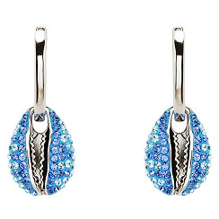 Sterling Silver Saph/Aqua Crystal Cowrie Shell Earrings
