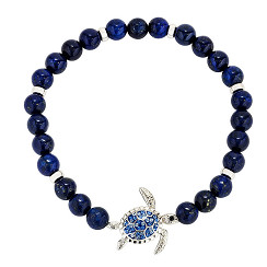 Sterling Silver Turtle Lapis Stretchy Bracelet